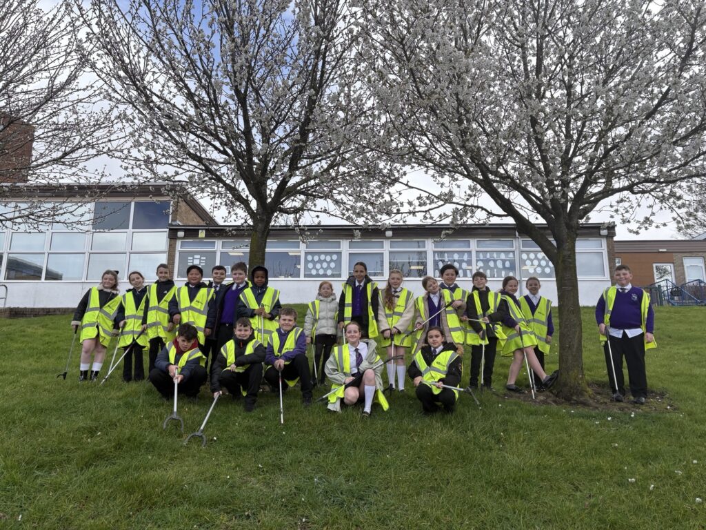 Lydia from Groundwork came to visit Year 5 again, and led the children in a litter pick around the school grounds. The children wore high-vis vests and used litter-pickers, working in pairs to hunt the school grounds for litter. As Eco Warriors, the children loved the opportunity to tidy up our school environment!