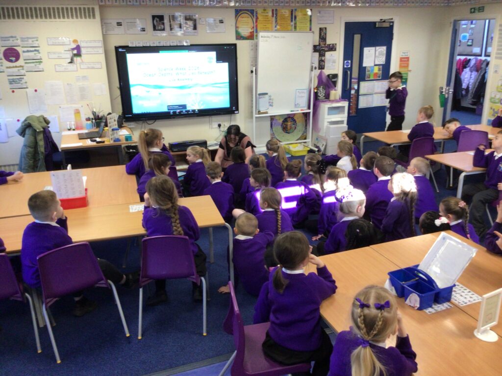 For Science week this week, KS1 watched a live lesson titled ‘What lies beneath?’ The children discussed the different types of life in the sea and made posters to show what they had learned.