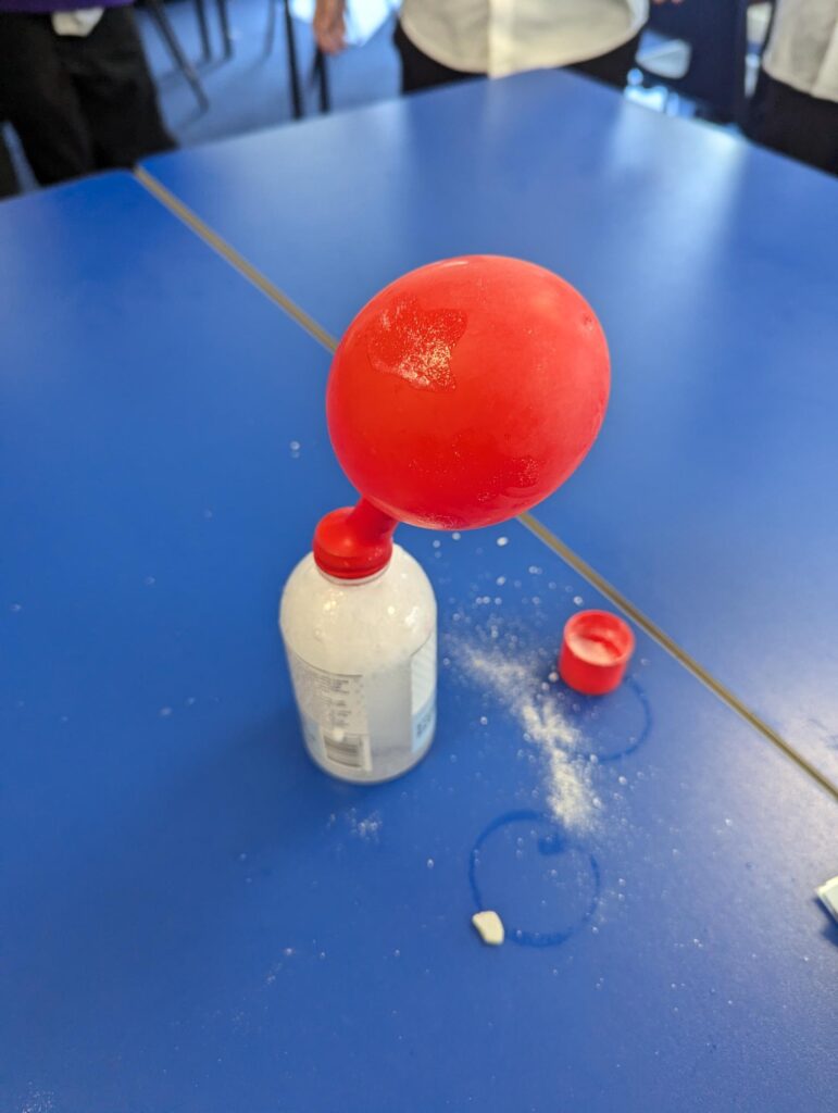 In Science. year 4 conducted a practical investigation to see how long it would take for gas particles to fill the space and blow the balloon up. The gas was created from an Alka Selzer tablet in water and we made predictions on what would happen based on our knowledge of solids, liquids and gases and how the particles behave.